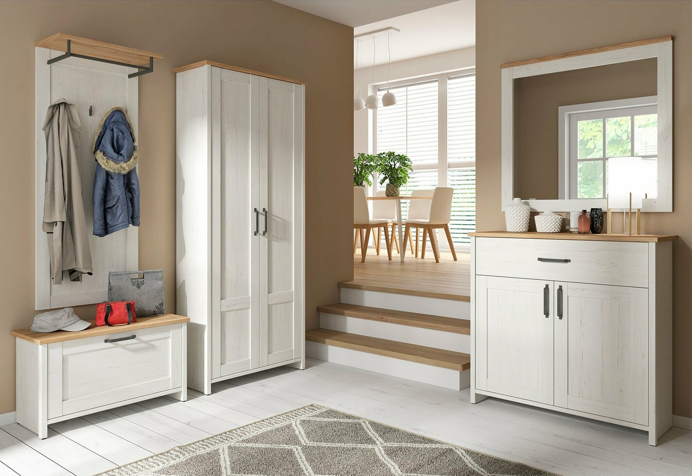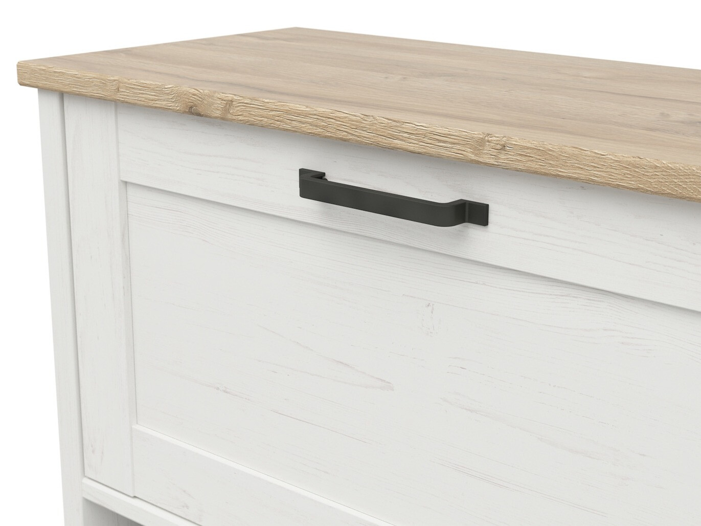Si te encanta la sencillez escandinava y las ideas de interiores, esta colección es lo que estás buscando. La colección de muebles transmite simplicidad y comodidad. La colección está dominada por colores claros y brillantes. Las luminosas fachadas y los armarios de los muebles tienen algunos toques de motivos de madera, que le dan un toque natural y combinan bien con las encimeras. Esta colección impresiona por la sencillez de las fachadas y los pequeños tiradores que actúan como acento. Con los muebles de la colección, puede instalar una sala de estar o un pasillo de aspecto elegante. El diseño no solo acogedor, sino también práctico, se adaptará a las cosas más importantes y hará que el uso de los muebles sea lo más agradable posible. El mecanismo de cierre silencioso del mueble es especial ya que protege las puertas y cajones del cierre rápido. Gracias a unos amortiguadores especiales, las puertas y los cajones se detienen justo antes de cerrarse y se insertan lentamente para no hacer ruido. Los muebles se verán muy bien en interiores claros y oscuros y crearán una atmósfera interior escandinava.