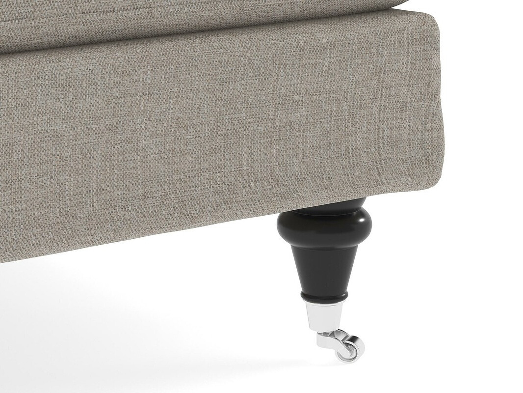 Este mueble tapizado clásico, moderno y atemporal está fabricado en Lituania. Los colores básicos, fáciles de combinar y las formas elegantes crearán un interior hogareño acogedor. Los pies de madera con detalles de metal plateado y las ruedas no solo son elegantes, sino también un atributo práctico que te ayuda a mover los muebles de un lugar a otro de la habitación. El cuerpo del mueble está hecho de un marco de madera y aglomerado laminado. La parte trasera del mueble está revestida con la misma tela que el principal, por lo que los muebles de esta colección también se pueden colocar en el centro de la sala de estar.