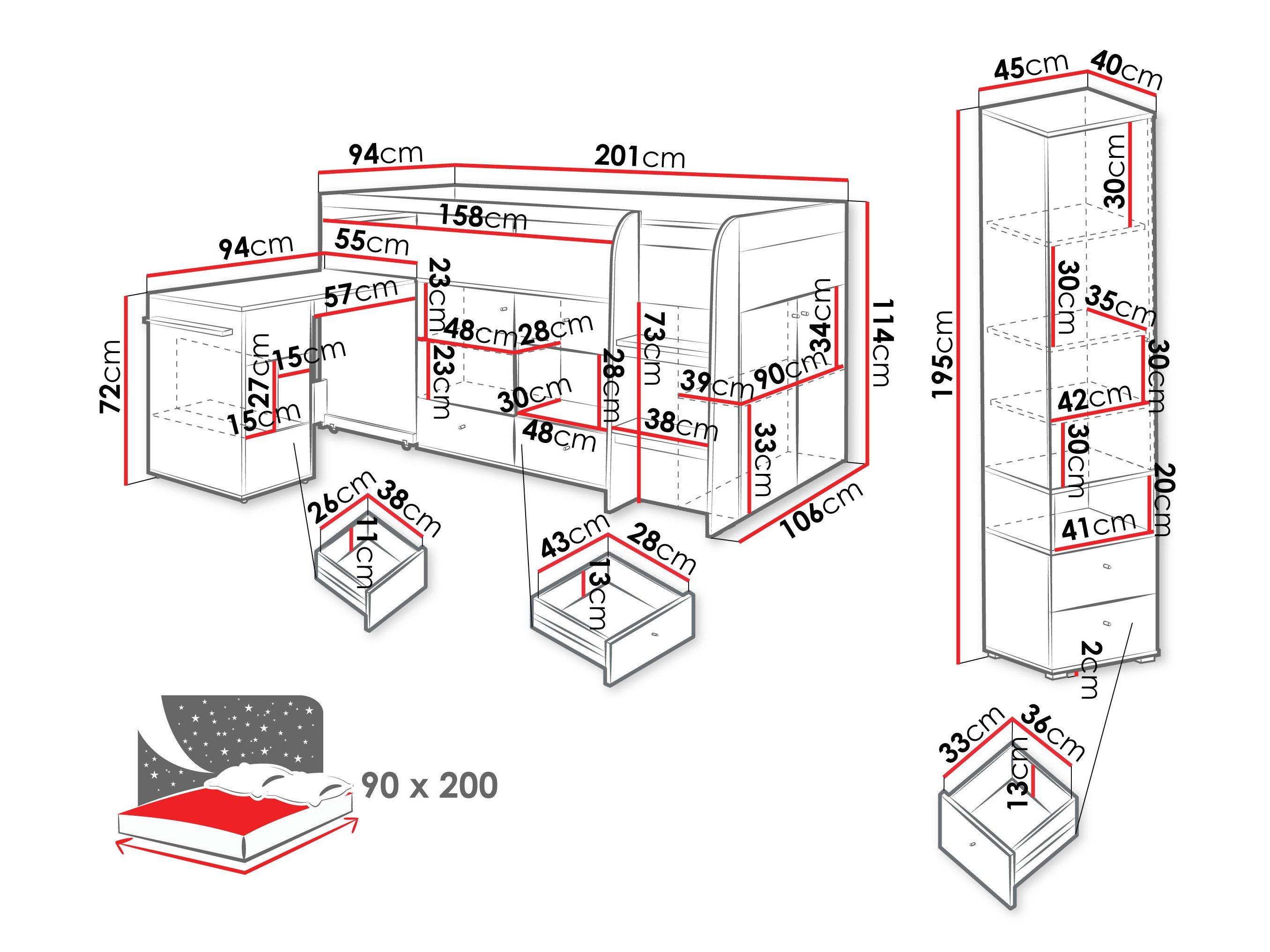 195 x 45 x 40 cm