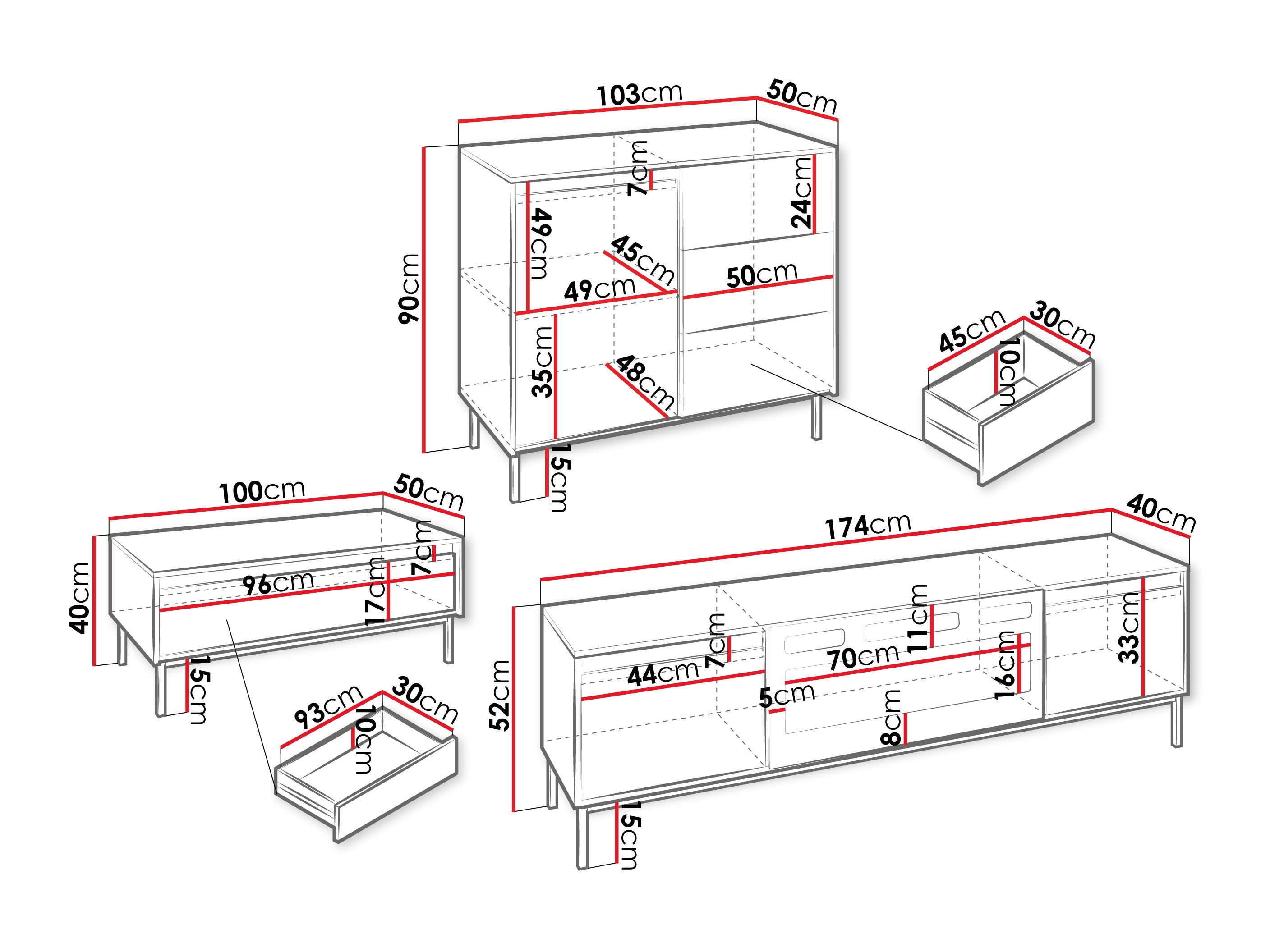 Dimensiones de la cómoda: