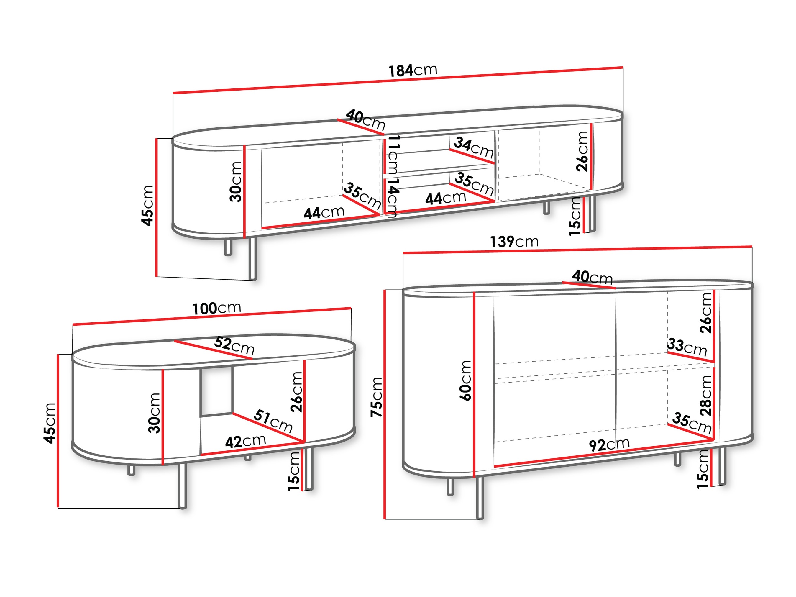 45 x 184 x 40 cm