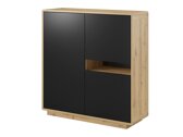 La colección de muebles seguramente encontrará su lugar en los hogares de las personas que aman el diseño interior moderno. Los muebles de color negro se animan con lados de roble. La principal característica de esta colección es su acabado altamente mate. Está recubierto con una superficie especial "Supermatt", que protege la superficie de los muebles de las huellas dactilares. El diseño exclusivo de la colección está subrayado por el mecanismo "Push to open", que facilita la apertura de la puerta del mueble seleccionado con un solo toque. Los muebles tienen esquinas redondeadas para mayor protección para los niños que juegan cerca. La iluminación LED se puede instalar en las áreas abiertas de los muebles. La colección incluye todos los muebles básicos de salón: una estantería, una mesa de centro, una estantería colgante, así como armarios y mesas de TV en varios tamaños diferentes.