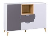 Esta colección de muebles de estilo moderno es adecuada tanto para una habitación de hombre joven como para un salón. Los muebles cuentan con una divertida combinación de colores blanco, grafito y roble, lo que los hace versátiles y adaptables a la mayoría de los interiores. El diseño incluye patas y manijas de plástico, lo que se suma a la sensación moderna general. Además, este mueble es un gran complemento para su hogar ya que su altura es compatible con las aspiradoras robot.