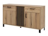 Una colección de muebles con un diseño atractivo y practicidad que garantiza un aspecto estético y un almacenamiento cómodo en cualquier estancia. Los muebles de esta colección están adornados con patas y tiradores de plástico negro, dándoles expresividad. El moderno diseño en contraste se complementa aún más con el color roble, combinado con detalles en negro. Esta combinación no sólo es visualmente atractiva sino que también crea una sensación de naturalidad y calidez en el hogar. Los estantes de vidrio y las inserciones de puertas de vidrio de la colección están hechos de vidrio templado, que es más seguro y duradero que el vidrio común. Además, existe la opción de pedir por separado iluminación LED de bajo consumo para la colección, que añadirá un toque moderno y brillante a su hogar. Con esta colección podrás crear fácilmente un salón o un pasillo armonioso, o complementar cualquier otro espacio de tu hogar.