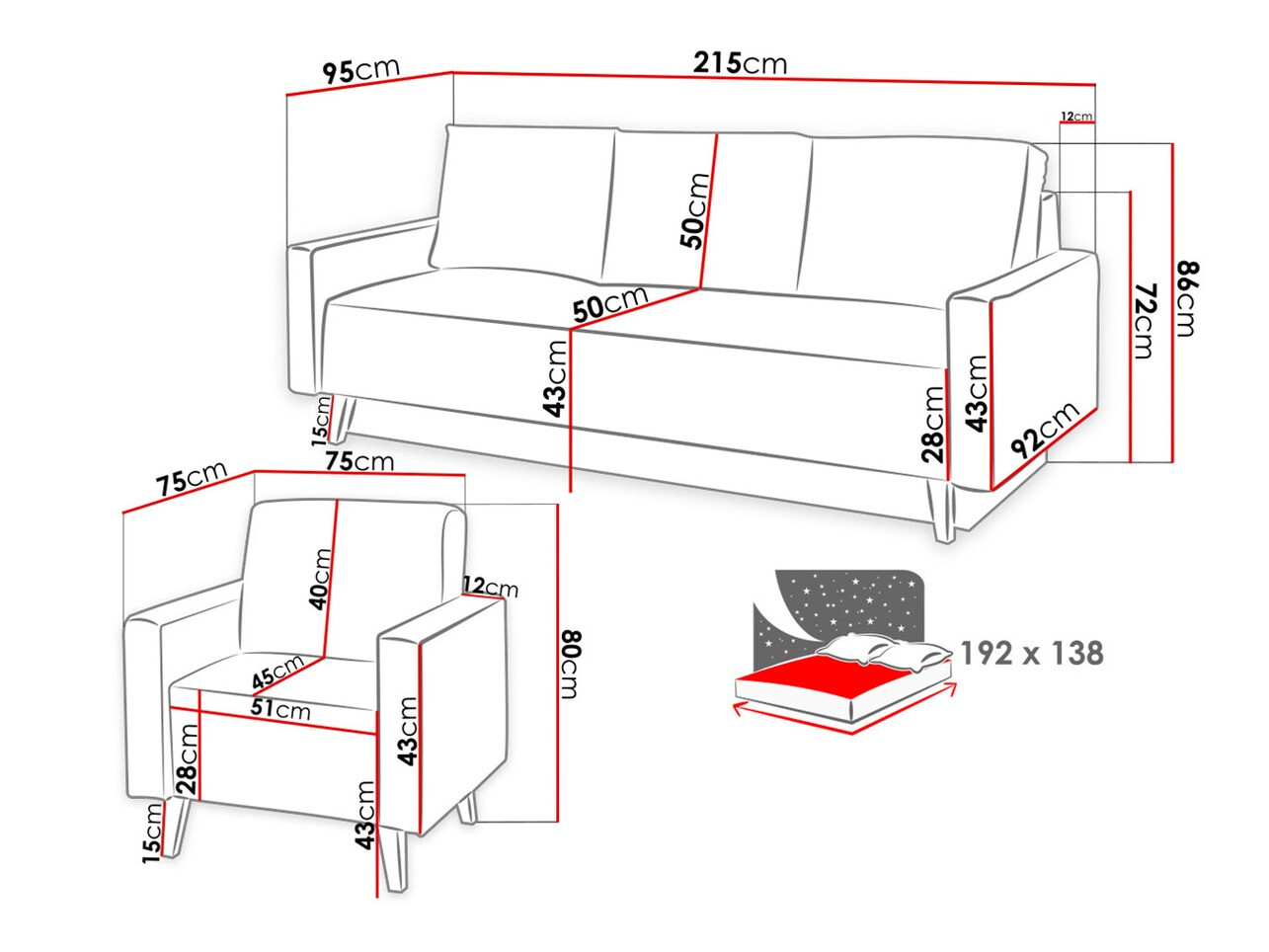 86 x 215 x 95 cm