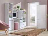 Colección de muebles: para los amantes del estilo moderno. Esta colección de dormitorios juveniles irradia un carácter juvenil. El diseño de muebles cuidadosamente pensado dejará espacio para todos los libros, cuadernos o útiles escolares. Los bordes de los muebles están cubiertos con una tira de acabado ABS de plástico resistente que se utiliza para proteger los bordes de los paneles. Los muebles están hechos de material LMDP, conocido por su durabilidad y acabado refinado. Las ranuras de las puertas de los muebles sirven como tiradores ocultos, no sobrecargan el diseño de los muebles, pero mantienen la practicidad. Los elementos individuales de la colección se pueden combinar fácilmente para que coincidan perfectamente con el diseño de la habitación y las necesidades específicas de los jóvenes.