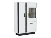 En esta colección de muebles de salón predomina el blanco brillante con detalles en negro. Los elementos de imitación a madera dan al mueble un carácter exclusivo. Las piezas frontales de los muebles están decorados con tiradores de plástico en color negro. El vidrio templado utilizado en la colección es más resistente a los efectos mecánicos que el vidrio ordinario. La iluminación LED de bajo consumo opcional proporcionará una atmósfera única. Los bordes de los muebles están protegidos con cinta de acabado especial que los protege de daños menores. El mueble tiene un mecanismo de cierre silencioso que evita que los cajones y puertas se cierren rápidamente. Si quiere crear un interior de hogar exclusivo y con estilo, ¡lo invitamos a que preste atención a esta colección!