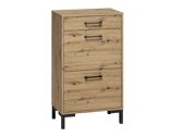 La principal característica de la colección es el color cálido del roble "Artisan" y las líneas claras y rigurosas. El motivo de madera da un carácter extra a los muebles. Las patas y tiradores negros combinan bien con las fachadas de color madera y crean una atmósfera de diseño moderno. Este mueble se verá genial tanto en interiores oscuros como claros. La funcionalidad es también uno de los aspectos más importantes del espacio hogareño. ¡Elija entre muebles o conjuntos individuales y vuelva a amar el espacio del pasillo!