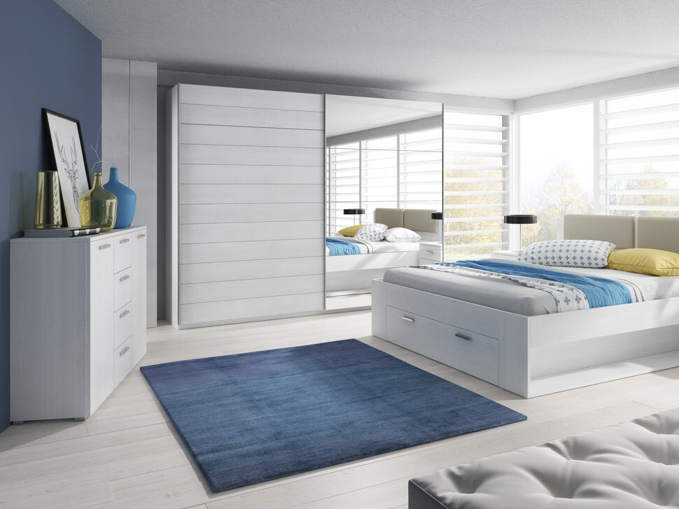 Los muebles de dormitorio están hechos de paneles de muebles de alta calidad, mientras que la combinación de superficies mate y brillantes le da un aire lleno de modernidad y contraste. Armarios de tres tamaños diferentes combinados con una cama, mesita de noche o una cómoda de la misma colección crearán un estilo armonioso en el dormitorio. El diseño de madera natural combinado con colores brillantes resulta especialmente atractivo. Las superficies brillantes de sus módulos le darán al dormitorio una sensación de luminosidad y frescura. Al elegir la colección de muebles, podrás disfrutar de un dormitorio moderno y ecléctico.