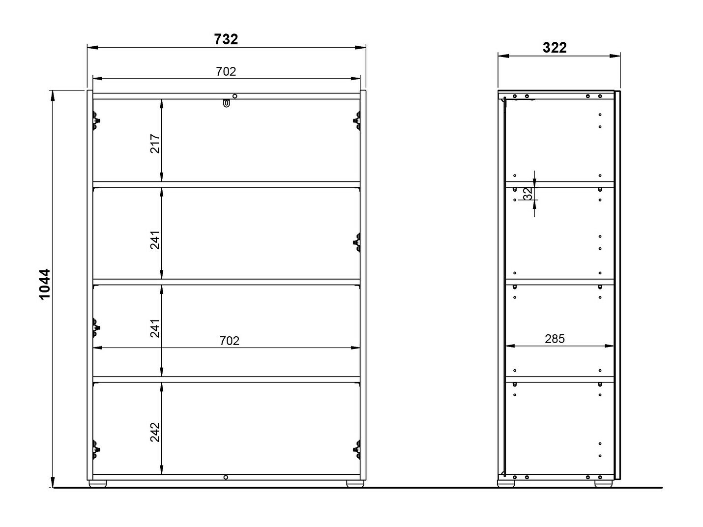 Dimensiones del estante: