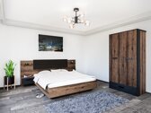 Los amantes del estilo industrial deben ver esta colección. En las fachadas de la colección predominan los colores oscuros de "Monastery" y el roble negro. El color roble oscuro se complementa perfectamente con el borde negro, que le da singularidad al diseño de los muebles. Se eligieron manijas negras bastante masivas, que encajan perfectamente en el conjunto. El color y los patrones de la madera crean un diseño de muebles industriales de aspecto único. La colección utiliza vidrio templado, más seguro y con mayor resistencia mecánica que el vidrio ordinario. Para el interior del dormitorio, puede elegir camas de varios tamaños diferentes con o sin caja de cama. El conjunto de cama incluye un somier con un mecanismo de elevación de gas. Puede agregar un toque adicional a la colección solicitando adicionalmente iluminación LED de bajo consumo. El mobiliario de la colección dispone de zonas de almacenaje tanto abiertas como cerradas, por lo que es adecuado para un almacenamiento práctico de cosas personales.