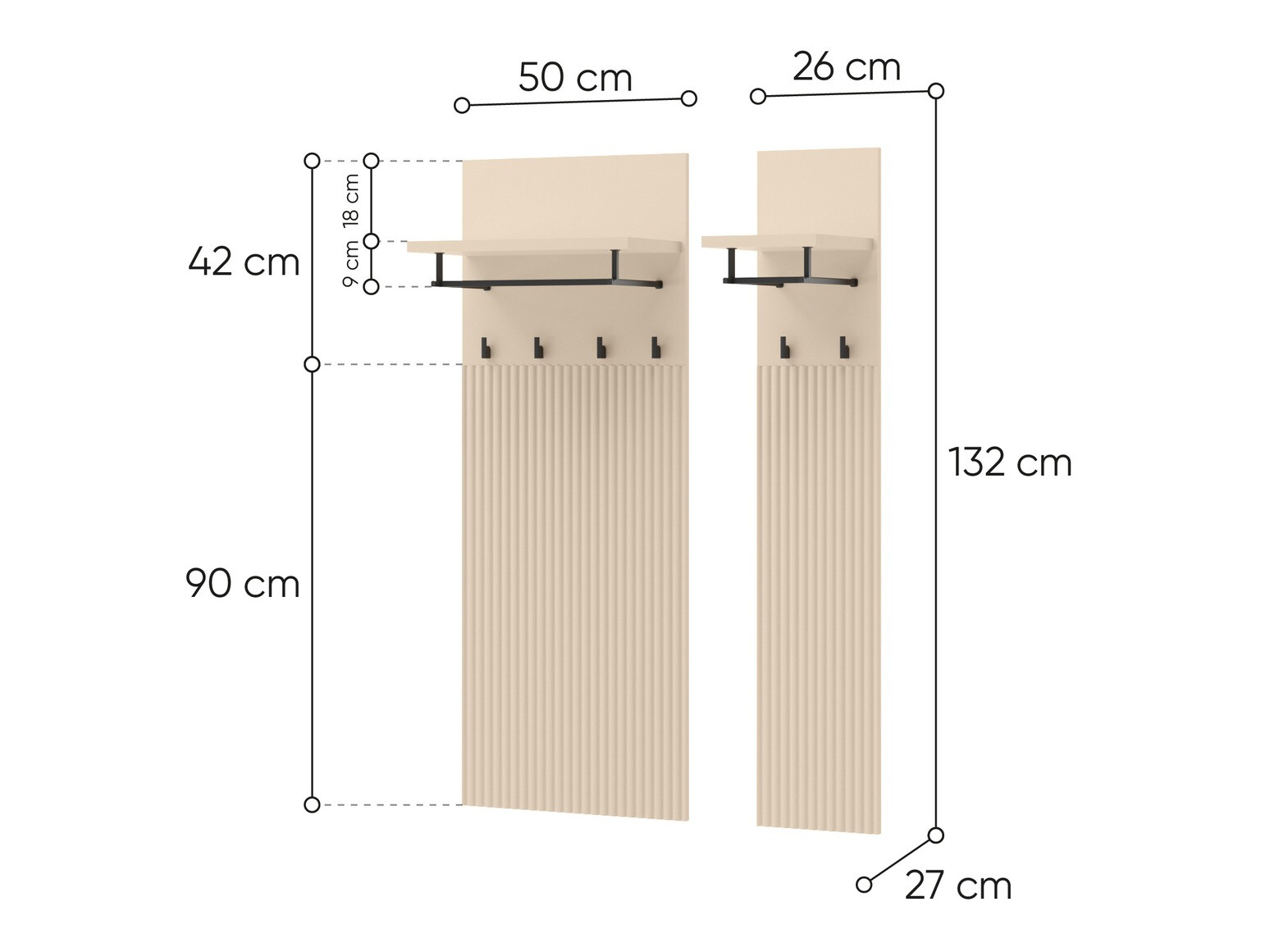90 x 50 x 24; 132 x 26 x 27 cm