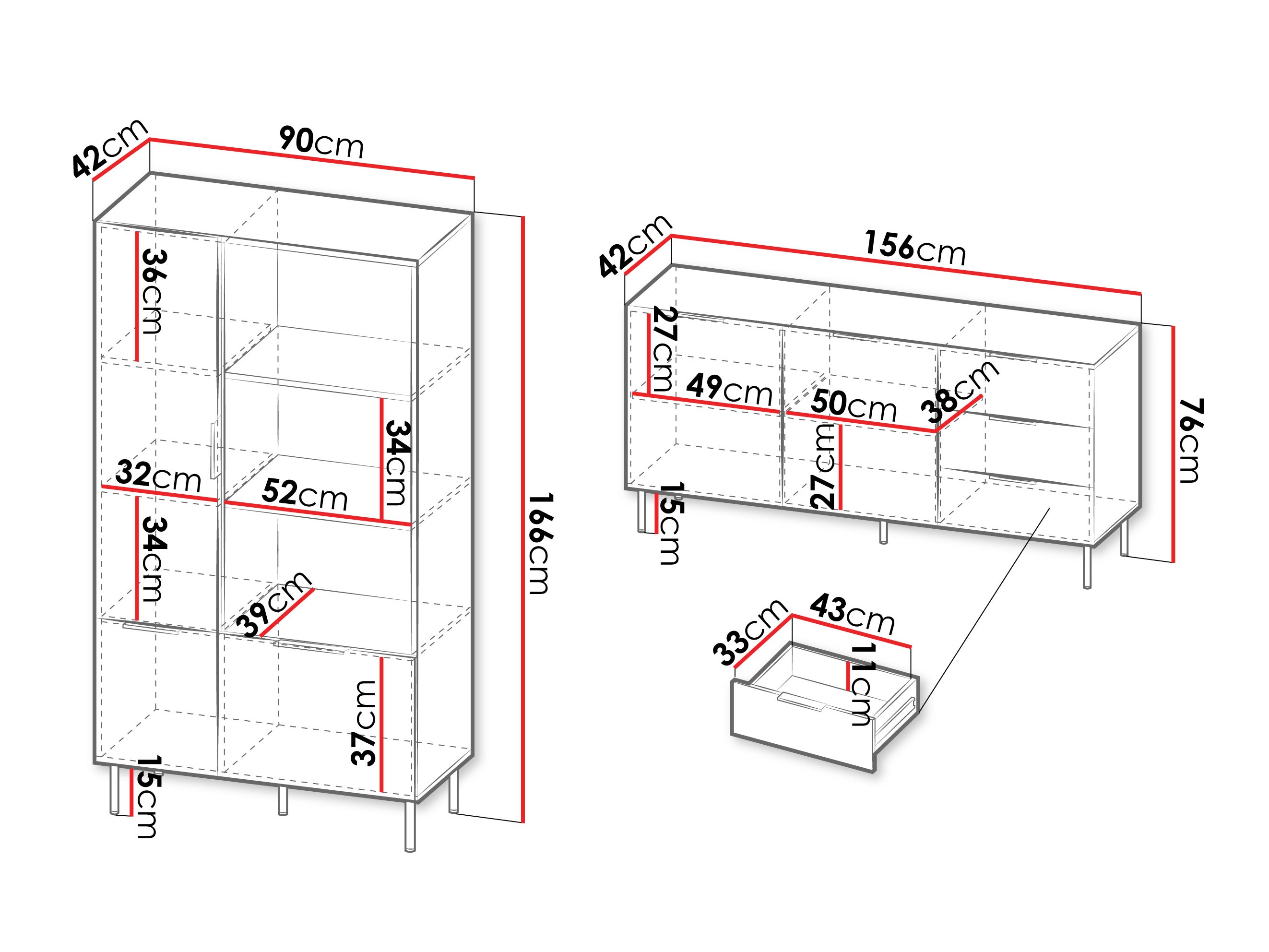 76 x 156 x 42 cm