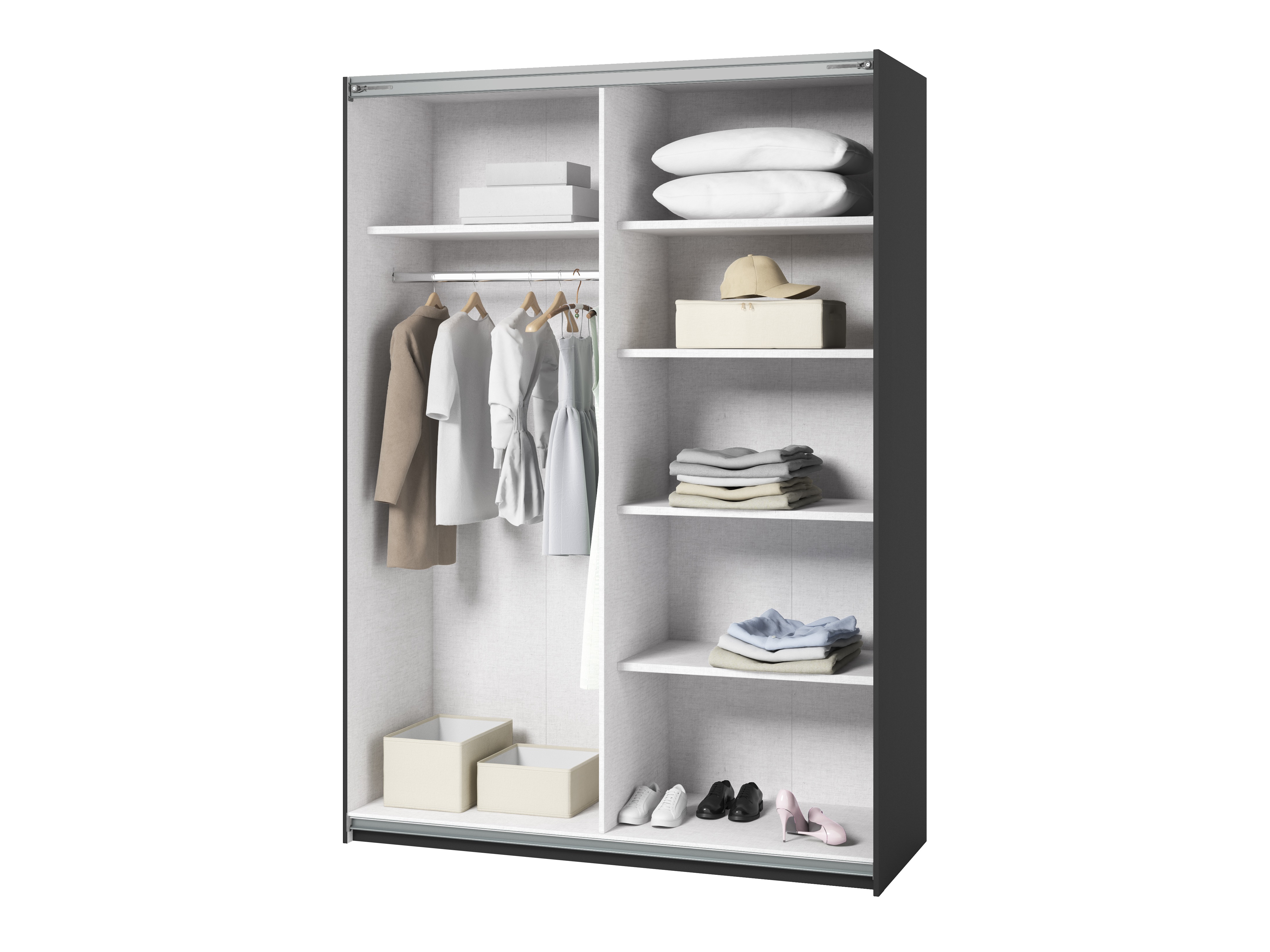 Para las personas que aman la armonía, recomendamos elegir muebles elegantes en colores claros, que agrandarán visualmente el espacio de cualquier habitación. Por otro lado, los colores marrón oscuro y negro del dormitorio atraerán a los amantes de la elegancia. La colección te ayudará a crear un dormitorio que no solo te ofrecerá comodidad y funcionalidad, sino que también reflejará tu personalidad.