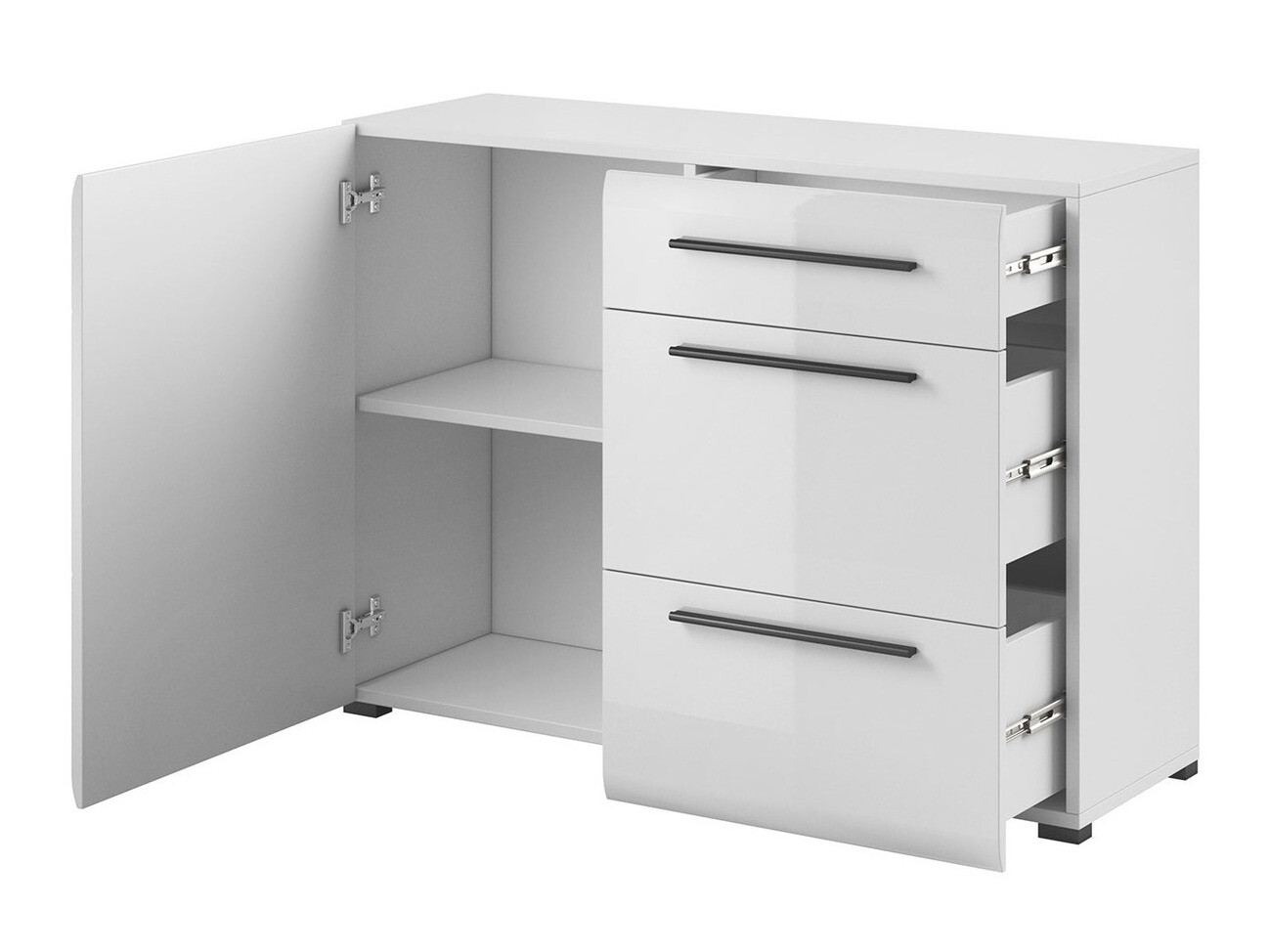 Los colores de los muebles de esta colección resultan muy elegantes. Sus tiradores largos y negros realzan la colección y le aportan un encanto excepcional. La colección ofrece cajoneras, vitrinas y muebles de TV. Nos presenta una gama perfecta para crear un estilo minimalista actual. Destaca también su decoración atemporal: los muebles blancos combinan bien con el estilo escandinavo y crea un diseño interior encantador. Por otro lado, si valoras los clásicos, los muebles de roble "Grandson" son la elección perfecta para ti. Los muebles de la colección de salón están hechos de tableros laminados, mientras que las partes frontales están hechas de tablero de MDF, protegido con lámina de PVC.