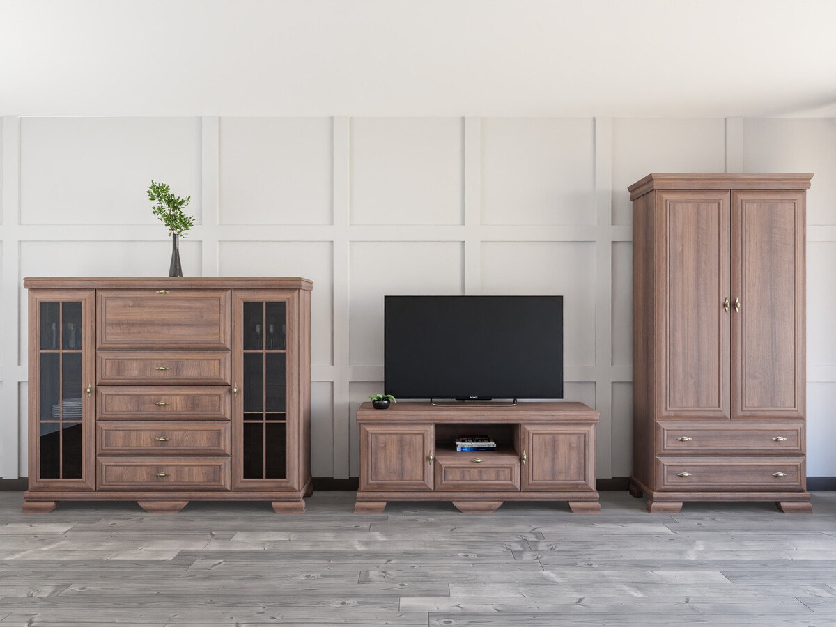 Esta colección de estilo clásico es para quienes valoran el diseño y la elegancia atemporales. Los muebles de la colección están decorados con tiradores metálicos de diseño exclusivo, dando a cada pieza un toque de lujo. Una de las características más importantes de esta colección es su superficie resistente a los arañazos, lo que garantiza la durabilidad del mueble. Incluso después de muchos años de uso continuo, este mueble mantendrá su aspecto impecable. Esta colección no sólo irradia elegancia sino que también prioriza la funcionalidad. Los estantes y cajones son espaciosos, lo que garantiza que tendrás suficiente espacio para mantener las cosas organizadas. La combinación de estilo clásico y practicidad garantiza que esta colección no sólo decorará su interior sino que también mejorará la calidad de su vida diaria. Disfrute de la belleza del estilo clásico y traiga elegancia atemporal a su hogar.