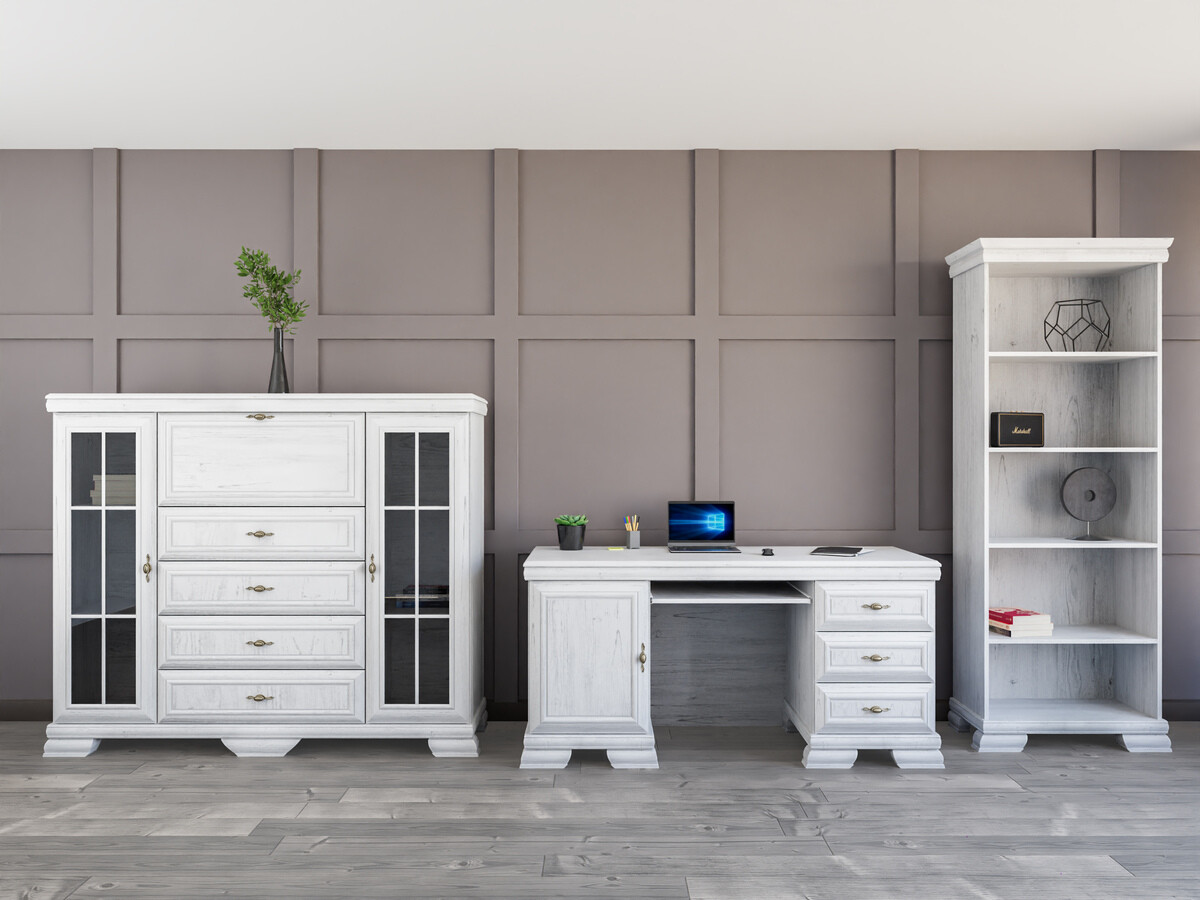 Esta colección de estilo clásico es para quienes valoran el diseño y la elegancia atemporales. Los muebles de la colección están decorados con tiradores metálicos de diseño exclusivo, dando a cada pieza un toque de lujo. Una de las características más importantes de esta colección es su superficie resistente a los arañazos, lo que garantiza la durabilidad del mueble. Incluso después de muchos años de uso continuo, este mueble mantendrá su aspecto impecable. Esta colección no sólo irradia elegancia sino que también prioriza la funcionalidad. Los estantes y cajones son espaciosos, lo que garantiza que tendrás suficiente espacio para mantener las cosas organizadas. La combinación de estilo clásico y practicidad garantiza que esta colección no sólo decorará su interior sino que también mejorará la calidad de su vida diaria. Disfrute de la belleza del estilo clásico y traiga elegancia atemporal a su hogar.