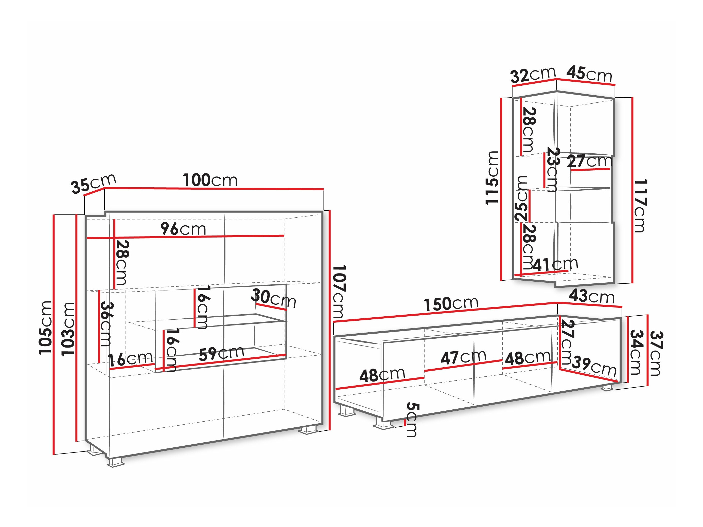 El conjunto de muebles es casi perfecto. Estoy satisfecho con ello. Sólo hay que prestar atención a la cómoda de 2 puertas. En cualquier caso, hay que fijarlo a la pared, ya que su peso hará caer el propio mueble al abrir la puerta. Dado que una parte del juego se puede montar en la pared, el paquete podría incluir tacos y tornillos. También se puede conectar a la iluminación, ya que hay 2 fuentes de luz LED independientes, 2 fuentes de alimentación independientes y pulsadores. Esta también podría ser una versión con 1 adaptador, distribuidor y 1 botón, porque así hay muchos cables y hay que presionar 2 botones por separado para encender. De todos modos, el conjunto es realmente bueno. ¡4 estrellas!