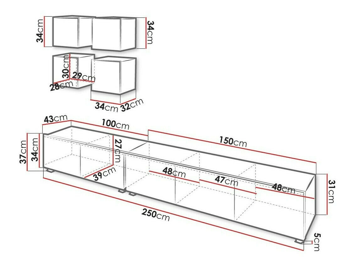 37 x 250 x 43 cm