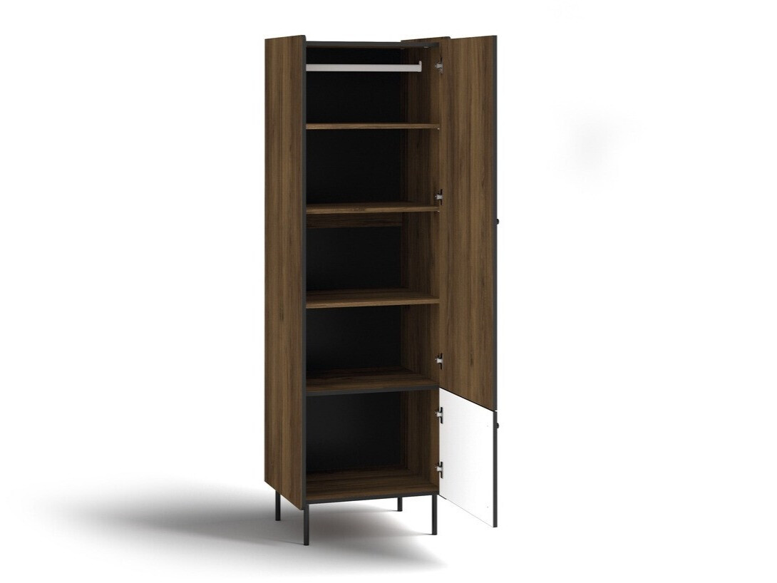 Cada vez valoramos más los momentos cómodos que pasamos en casa, donde podemos relajarnos, trabajar y disfrutar del tiempo libre. Esta colección inspirada en la naturaleza llama la atención con sus colores naturales y detalles intrincados, lo que la hace perfecta para aquellos que buscan crear un espacio de vida más acogedor. La combinación de líneas negras mate y color nogal le da un toque moderno, mientras que los detalles de metal negro y las pequeñas manijas minimalistas completan el diseño. Las patas altas de los muebles son adecuadas para hogares con aspiradoras robot. Además, la colección proporciona áreas de almacenamiento tanto abiertas como cerradas, lo que permite la exhibición práctica de objetos personales. Si está buscando crear un espacio habitable cómodo y funcional, esta colección podría ser justo lo que está buscando.