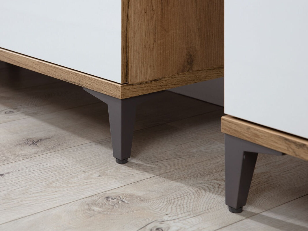 Este mueble está adaptado para una aspiradora robot. Cada vez aparecen más muebles con patas altas para los hogares con aspiradoras robot. La altura de las patas de estos muebles se ajusta a las aspiradoras robot estándar. Tenga en cuenta que la altura de las patas debe ser superior a 10 cm. En este caso, el robot alcanzará fácilmente los lugares debajo de los muebles y no se atascará.