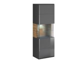 La colección de muebles fue creada para aquellos que aman los muebles sencillos y geométricos. Las formas simples destacan con colores actuales y líneas frontales suaves. El cuerpo mate de los muebles, combinado con frontales brillantes y decoración de roble "San Remo", crean una combinación muy elegante e irradian sutileza y minimalismo. Los bordes redondeados de las puertas confieren a los muebles de esta colección un carácter único. Todo esto se complementa con tiradores rectangulares e iluminación LED de ahorro de energía opcional, que se pueden adquirir de forma adicional.