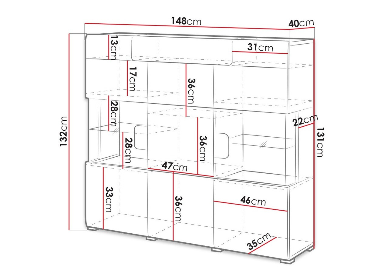 La colección incluye armarios de varios tamaños, amplias cómodas, un estante y una mesa de café. El acabado brillante de los muebles dará a la habitación mayor sensación de amplitud. Las puertas y los cajones de la cómoda se pueden abrir con un solo clic, gracias al mecanismo integrado "Push to open" que facilita enormemente su uso.