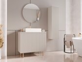 En el diseño de interiores, a menudo son los detalles los que crean esa sensación de exclusividad. Esos toques finales aportan carácter a un espacio y ayudan a transformar una casa en un verdadero hogar. Esta colección de mobiliario se basa precisamente en ese principio. En ella, la elegancia sutil se combina con una funcionalidad meticulosa, permitiéndole crear una estética cohesiva y armoniosa en las distintas estancias de su hogar. Los acabados acanalados y de listones aportan autenticidad al diseño, mientras que los tiradores metálicos en tonos dorados y los discretos sistemas de apertura mediante presión (push-to-open) en piezas seleccionadas ayudan a mantener una estética limpia y unificada. Las altas patas metálicas están diseñadas para facilitar el paso de robots aspiradores, y la combinación de almacenamiento abierto y cerrado garantiza una vida organizada y sencilla. Esta colección se integra sin esfuerzo en interiores de estilo clásico moderno, convirtiéndose en un acento sutil, pero impactante, para el hogar.