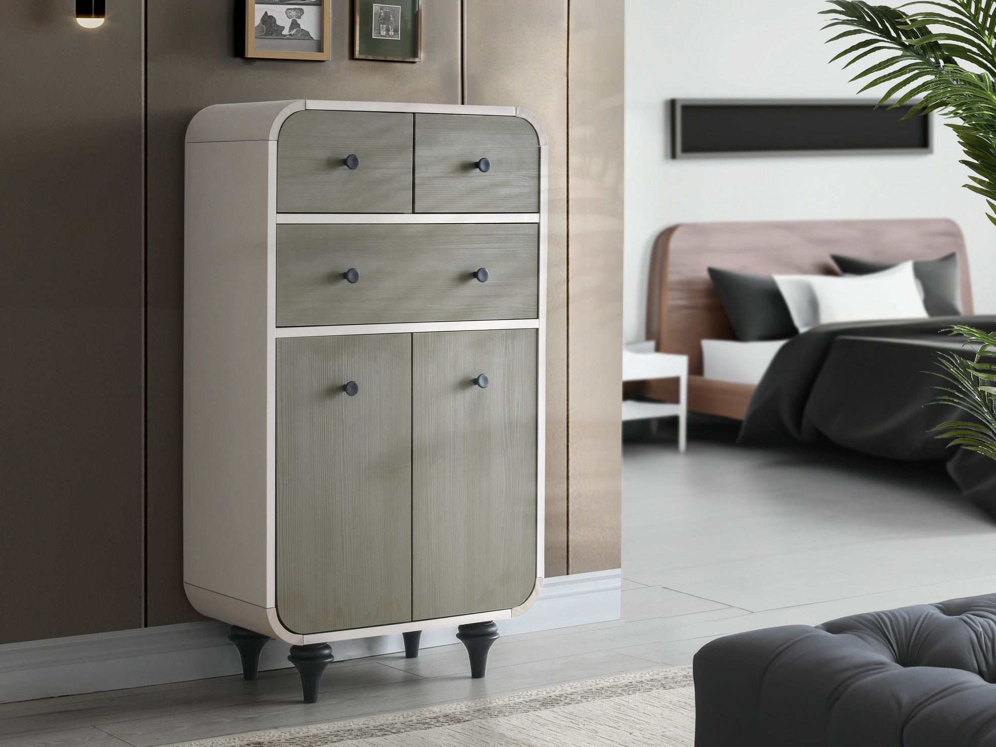 Este mueble está adaptado para una aspiradora robot. Cada vez aparecen más muebles con patas altas para los hogares con aspiradoras robot. La altura de las patas de estos muebles se ajusta a las aspiradoras robot estándar. Tenga en cuenta que la altura de las patas debe ser superior a 10 cm. En este caso, el robot alcanzará fácilmente los lugares debajo de los muebles y no se atascará.