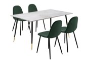 Conjunto de mesas y sillas para comedor Denton 819 (Negro + Dorado + Verde oscuro + Mármol gris)