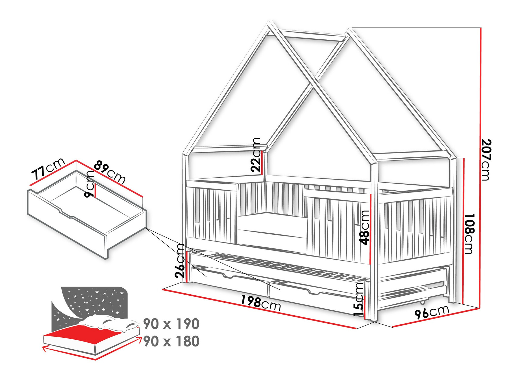 - 90 x 190 cm