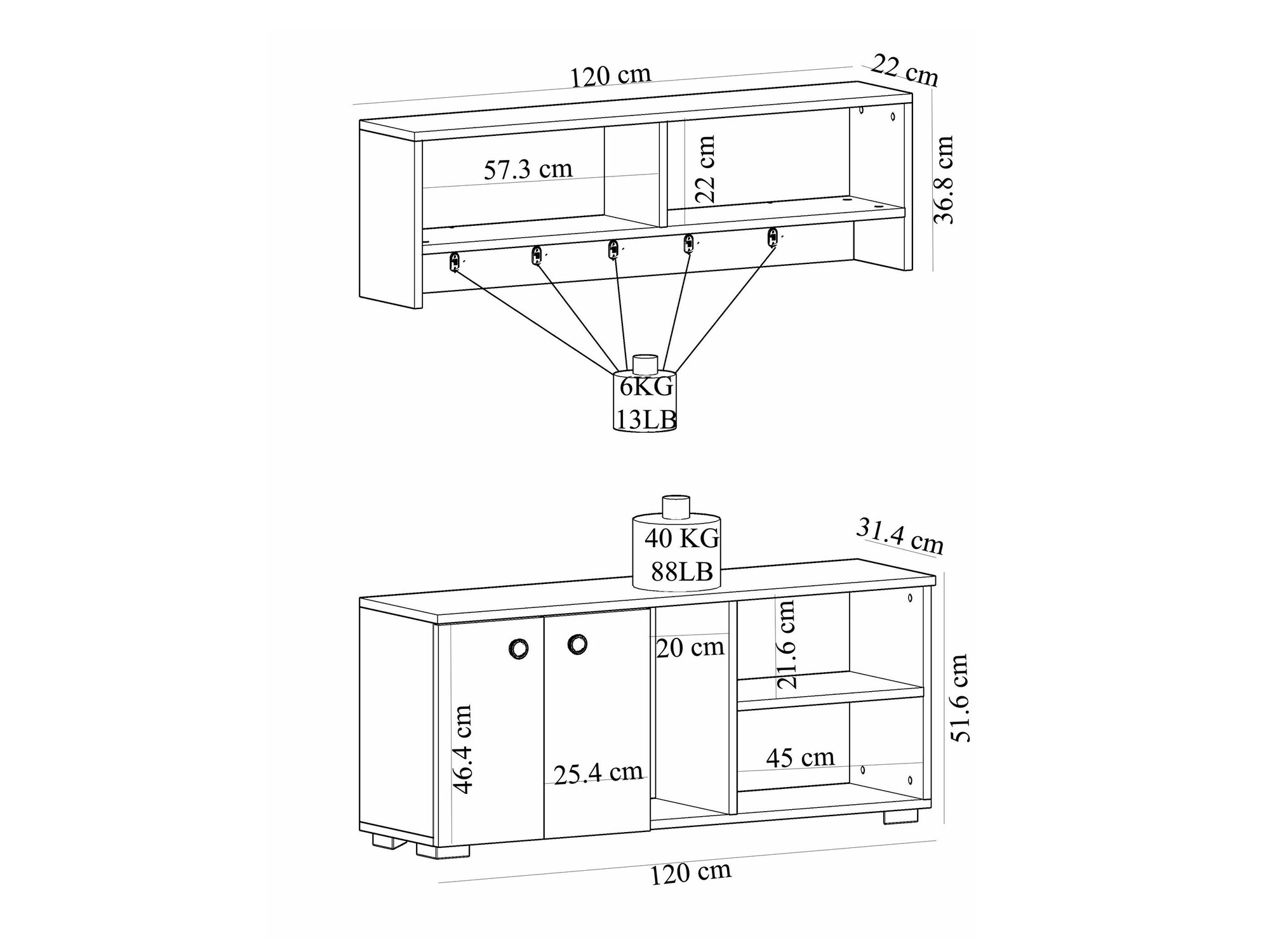 51.6 x 120 x 31.4 cm